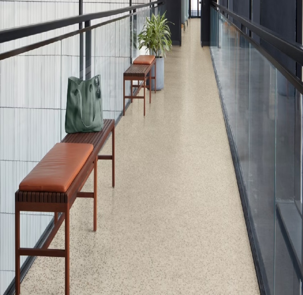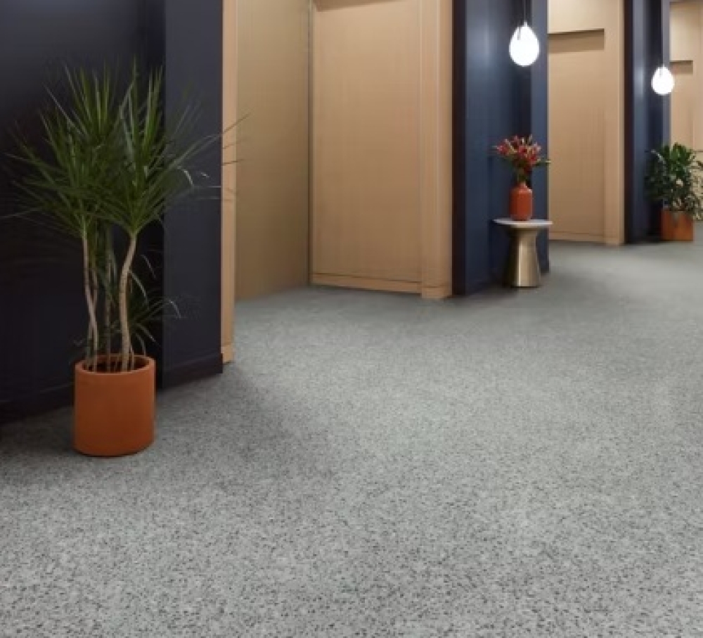 Omdat de wereld klaar is met blenden, gieten en wachten. Met Interface In The Mix™ LVT heeft u een authentieke terrazzo-look zonder terrazzo-gedoe. Veelzijdige kleuren beschermd door Ceramor+™. Vuil glijdt weg terwijl de kans op uitglijden laag blijft. En dat allemaal met een Sound Choice+™-backing om het geluid te verminderen. De In the Mix collectie is bij RN Project verkrijgbaar in 6 kleuren.